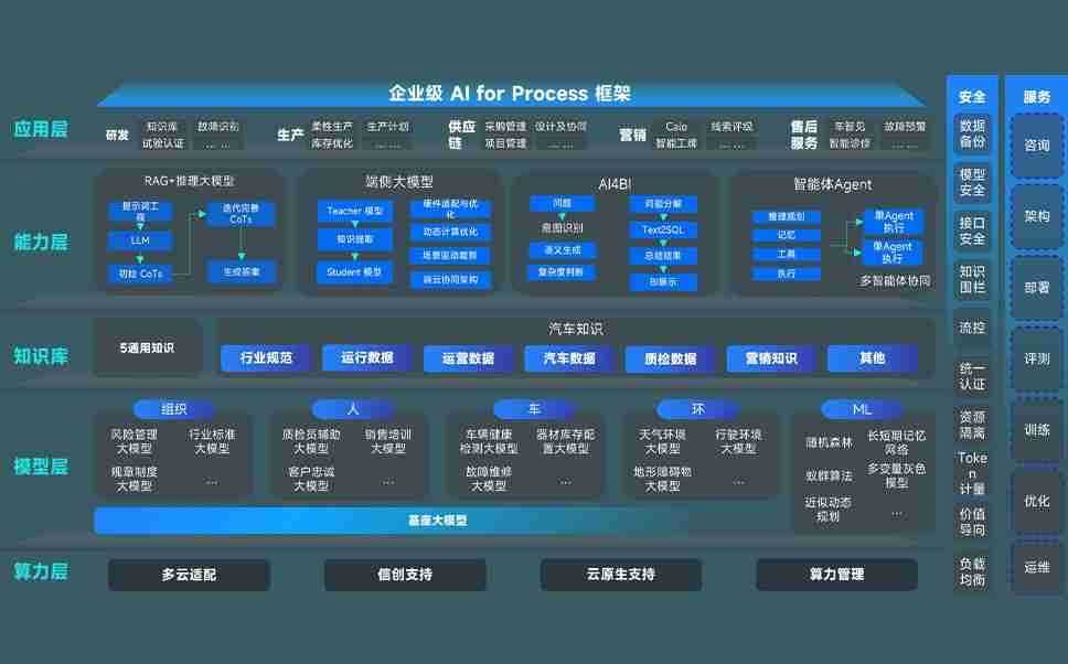 端到端的一站式AI工作空间深度融合了从企业战略规划到日常经营的全流程业务板块,,定向解决车企内部领域多、、部门多、、、、链条长、、场景碎片化等难题,,,,支持车企快速构建以AI为核心的生产力写作体系,,,,实现任务执行与AI能力的无缝集成与交互